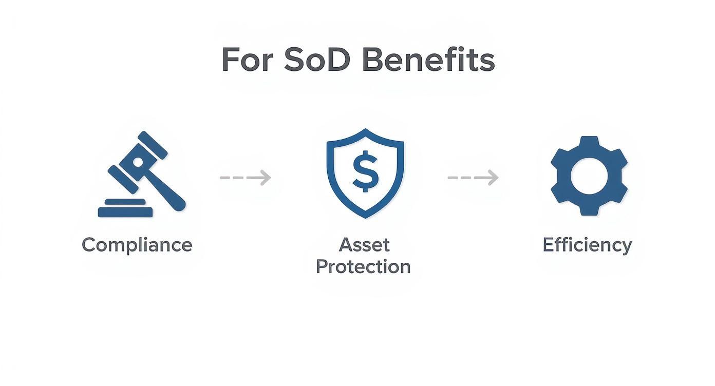Moving from theory to real-world consequences, it becomes crystal clear why segregation of duties (SoD) is a non-negotiable part of modern business security and resilience. This isn't just some abstract accounting concept; it's a practical shield that protects your most valuable assets, keeps you on the right side of regulators, and brings stability to your operations. Without it, you’re leaving the door wide open to serious financial and reputational harm.